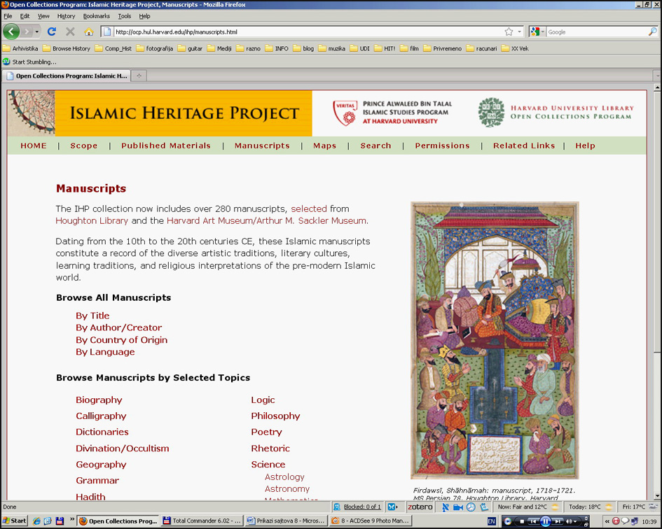 Open Collections Program at Harvard University, Islamic Heritage Project, <http://ocp.hul.harvard.edu/ihp/> (27. X 2010).