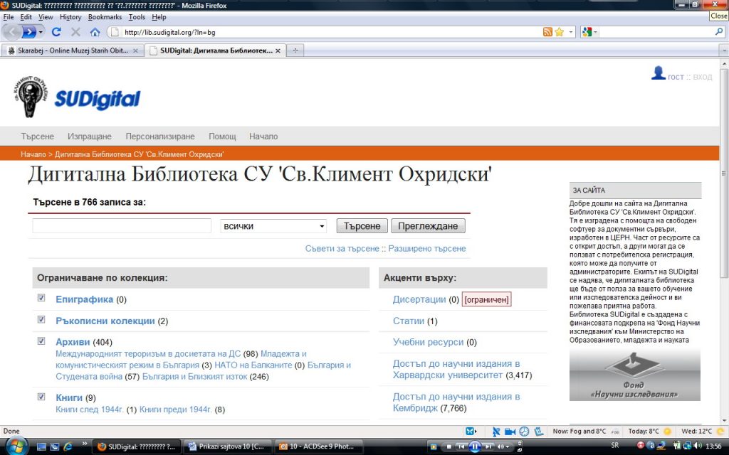 Софийски университет „Св. Климент Охридски“, SUDigital – Дигитална Библиотека СУ ‘Св.Климент Охридски’, <http://lib.sudigital.org/?ln=bg> (18. XII 2010).