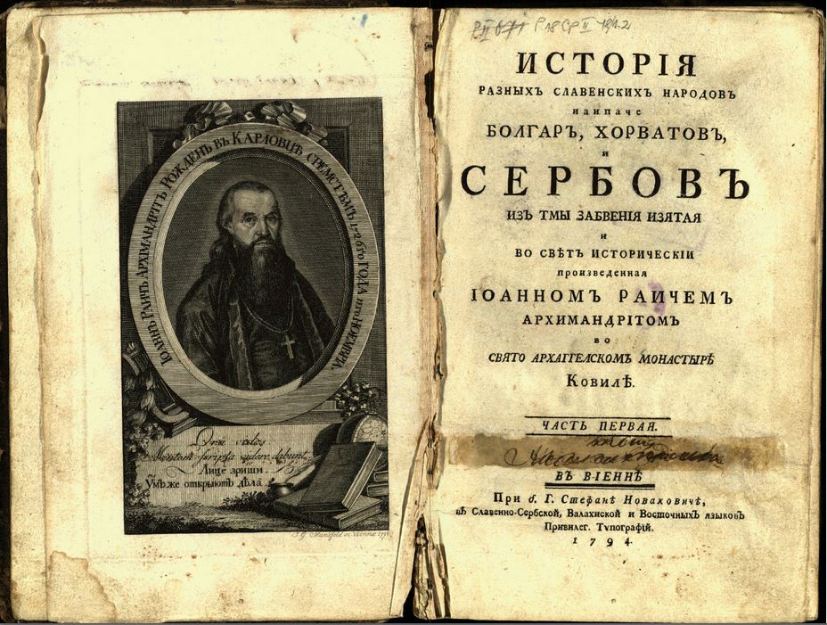 Jovan Rajić, Istorija razaznih slovenskih naroda, posebice Bugara, Hrvata i Srba,1794.