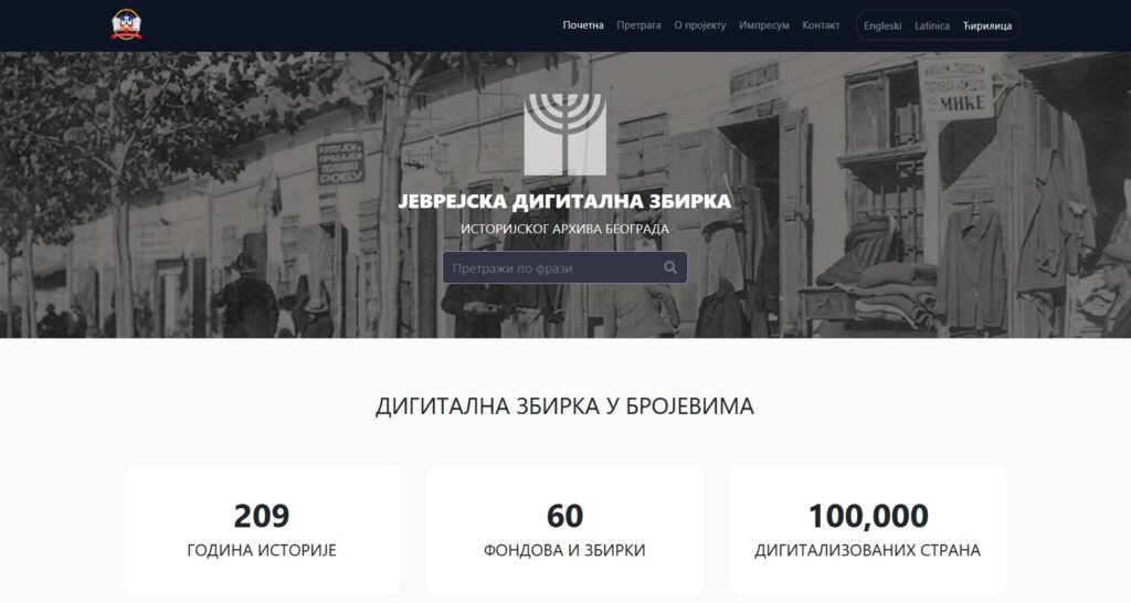 Nastala kao rezultat trogodišnjeg istraživanja fondova i zbirki Istorijskog arhiva Beograda Jevrejska digitalna zbirka od 2021. godine je dostupna preko namenski kreirane internet prezentacije u režimu otvorenog pristupa. Nakon pregledanja, izdvajanja, analitičke obrade i skeniranja većine od oko 60 hiljada predmeta, stvorena je jedinstvena tematska celina koja se odnosi na život beogradskih Jevreja od kraja XVIII do polovine XX veka. Kao rezultat finalne digitalne obrade arhivske građe omogućena je napredna pretraga, koja osim pretrage prema unetoj frazi takođe poseduje filtraciju prema dvadesetak ponuđenih tema, fondu/zbirci, pojmovnom registru i zanimanju, godini nastanka. Celokupan sadržaj sajta, uključujući i analitičke opise predmeta dat je na srpskom i engleskom jeziku. Tematski odabir građe uključuje i predmete u vezi sa holokaustom, a zajedno sa ranije kreiranom bazom podataka zatočenika logora Sajmište Arhiva Beograda, čini zaokruženi okvir za istraživanje tragične sudbine beogradskih Jevreja. Kao rezultat ovog arhivističkog poduhvata možemo reći da je nastala jedinstvena digitalna platforma koja po prvi put, ne samo u regionalnim okvirima, praktično omogućava istraživanje pojedinih tema bez ikakvog fizičkog prisustva na mestu u kojem je građa pohranjena. Svakako da bi ovaj impresivan rezultat bio pojačan da su na sajt osim postojeće male galerije dokumenata uvršteni i neki dodatni propratni sadržaji, poput prigodnih članaka, odabrane bibliografije, interakcije sa korisnicima, ili objava o registrovanim istraživanjima nastalim na osnovu ovde dostupne građe.