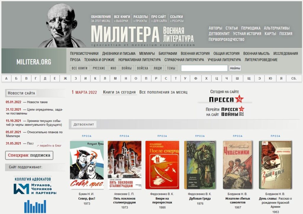 Олег Рубецкий, Сайт «Милитера» («Военная литература»)<http://militera.org/> (20. II 2022).