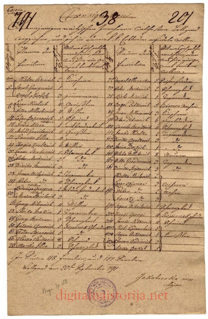 Spisak srpskih porodica u Zemunu 1791. god. (Istorijski arhiv Beograda)