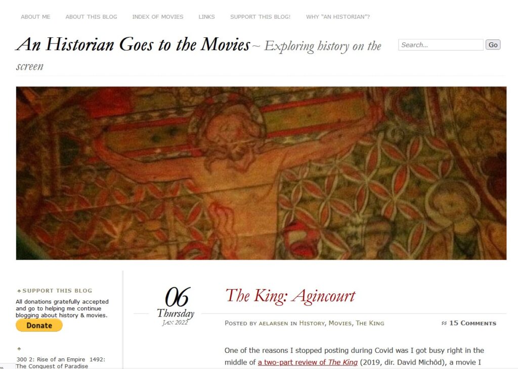 Svako ko je na internetu tragao za podacima relevantnim za izučavanje prošlosti zna da tu ima i vrlo mnogo taloga, kao i materijala sasvim sumnjivog porekla. Pseudoistoriografija, koju smo nekada redovno sretali po raznim feljtonima u štampi, radio i televizijskim emisijama, svakodnevnici uopšte, danas svoje mesto uveliko nalazi i na internetu. Sa druge strane, zahvaljujući svetskoj mreži, školovani istoričari takođe dobijaju mogućnost da ukažu na oduvek prisutno falsifikovanje istorijskih činjenica. Američki istoričar Endrju I. Larsen (Andrew E. Larsen), stručnjak za srednjovekovnu istoriju, 2014. godine pokrenuo je zanimljiv blog u kojem daje prikaze filmova i televizijskih serija sa istorijskom tematikom, usmeravajući analizu na pitanja istorijske tačnosti, odnosa između filma i nauke, kao i načina na koji se predstavljaju istorijske činjenice. U najvećem broju slučajeva dati su prikazi filmova o antičkom, srednjovekovnom i ranom modernom periodu u Evropi, ali su povremeno obuhvaćene i druge epohe i delovi sveta. Autor navodi da je blog posvećen pre široj publici i studentima, nego profesionalnim istoričarima. Do sada je prikazano oko stotinu naslova (84 filma i 22 TV serijala), a pored detaljne analize svakog filma, autor na kraju svakog članka daje i linkove za upotpunjavanje znanja o pojedinim temama. Sajt je registrovan na osnovnom vordpres domenu, tj. bez nadoknade za plaćanje zakupa, a autor poziva korisnike da podrže rad bloga minimalnim uplatama, u prvom redu radi plaćanja pretplate na filmske i televizijske platforme.