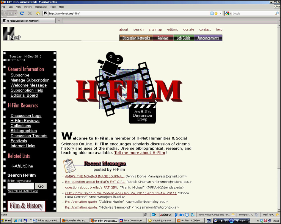 H-Net: Humanities and Social Sciences Online, H-Film Discussion Network, <http://www.h-net.org/~film/> (12. XII 2010).
