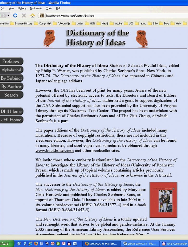 Philip P. Wiener (Ed.), Dictionary of the History of Ideas, Electronic Text Center at the University of Virginia Library, 1. V 2003, <http://etext.virginia.edu/DicHist/dict.html> (12. VI 2008).