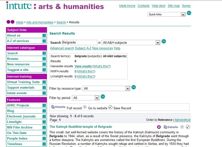 Intute: Arts and Humanities – History, 30. IX 2007, <http://www.intute.ac.uk/artsandhumanities/history/> (30. IX 2007).