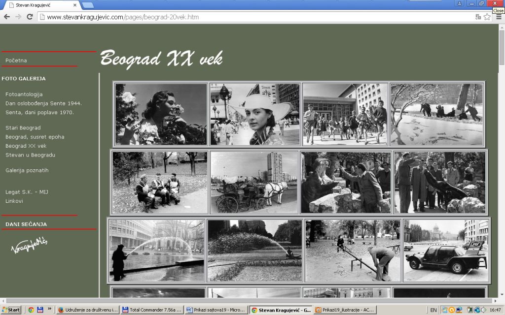 Osim legata koji se čuvaju u Istorijskom arhivu Beograda, Istorijskom arhivu Sente i u Muzeju istorije Jugoslavije, život i delo poznatog jugoslovenskog i srpskog fotoumetnika i fotoreportera Stevana Kragujevića (1922-2002) moguće je bliže upoznati i uvidom u sadržaj ovog sajta, a zaslugom njegove kćerke Tanje Kragujević. Nakon uvodne stranice koja sadrži nekoliko kratkih informacija o Stevanu Kragujeviću, o autorskim pravima njegove zaostavštine, kao i link ka odrednici na Vikipediji, posetioci mogu ući u dubinu prezentacije putem dinamičnog, vertikalno položenog linka sa dasne strane ekrana. Dalja navigacija sajtom je veoma jednostavna – na levoj strani nalazi se meni koji vodi ka glavnom odeljku Delo – foto galerija, gde je grupisano nekoliko reprezentativnih celina: Fotoantologija; Dan oslobođenja Sente 1944; Senta, dan poplave 1970; Stari Beograd; Beograd, susret epoha; Beograd XX vek, Stevan u Beogradu; Galerija poznatih. Ispod je posetiocima dat i veoma iscrpan popis preporučenih linkova. Pregledno i jednostavno, sa brižljivo odabranim prezentovanim fotomaterijalom, ovaj sajt na adekvatan način daje mogućnost upoznavanja sa umetnikom koji je svojim bogatim delom sačinio jedinstvenu dokumentarnu hronologiju o razvoju Jugoslavije, svedočeći, kao fotoreporter, o svim značajnim dogaćajima iz politike, kulture, umetnosti i sporta.