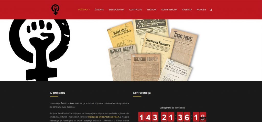 Među različitim aktivnostima kojima se obeležava jubilej stogodišnjice od osnivanja časopisa Ženski pokret jeste i izrada sajta u kojem centralno mesto zauzima digitalizovana kolekcija časopisa koji je izlazio u Beogradu od 1920. do 1938. godine, a koji je izdavalo Društvo za prosvećivanje žene i zaštitu njenih prava. Digitalna kolekcija koja sadrži preko 2500 objavljenih članaka je dostupna širem krugu zainteresovanih korisnika zahvaljujući saradnji Instituta za književnost i umetnost i Narodne biblioteke Srbije, na čijem serveru je materijal pohranjen i obrađen, u okviru referentne Digitalne NBS. Pored sekcije Časopis u kojoj je omogućena hronološka pretraga kolekcije od preko 240 objavljenih brojeva, na sajtu su posebno izdvojene i Bibliografija Ženskog pokreta, Ilustracije (sa naslovnim stranama) iz časopisa, Tekstovi o Ženskom pokretu saradnica projekta, objavljenih na različitim mestima. Osim toga, tu su i informacije o naučnom skupu posvećenom časopisu, koji je planiran za oktobar 2020. godine, zatim galerija sa fotografijama održanih događaja, novosti, a posebno treba pohvaliti informativan i sadržajan deo na početnoj stranici, podeljen u sekcije O projektu i O časopisu. Osim toga, ističemo da omogućena funkcija pretrage sajta prema ključnim rečima, nažalost, isključuje samu pretragu digitalne kolekcije časopisa Ženski pokret.