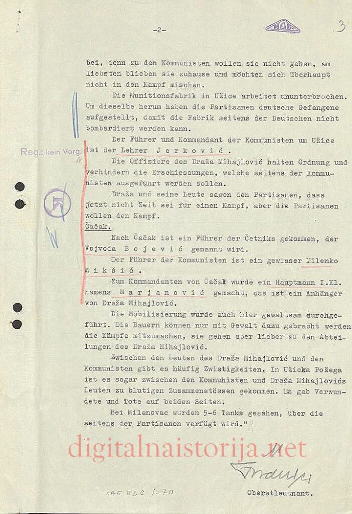 U Planinici se nalazi oko 80 Nemaca, sa kojima komunisti ljudski postupaju. U Užicu kao i u Čačku sproveli su komunisti i ljudi Draže Mihailovića mobilizaciju. Seljaci stupaju većim delom u odrede Draže Mihailovića, jer neće da idu komunistima, a najradije bi ostali kod kuće i ne bi se uopšte hteli mešati u borbu.