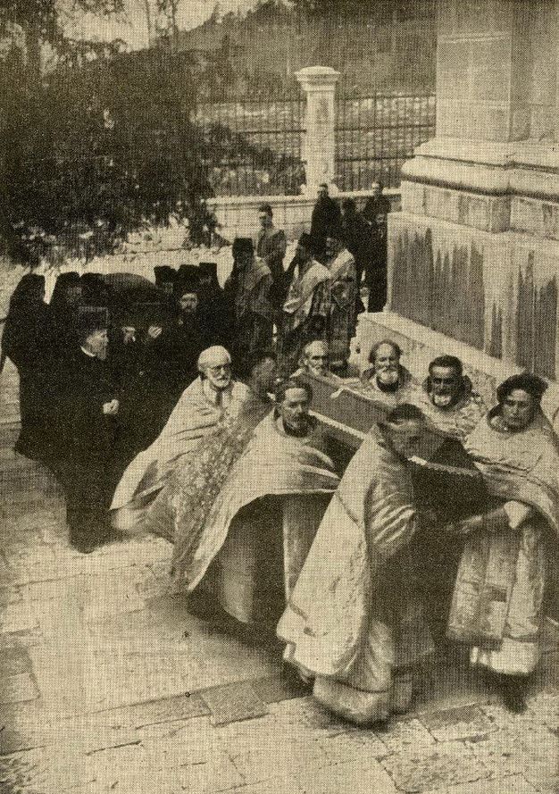 Kivot s moštima kneza Lazara po dolasku iz manastira Bešenovo obilazi Sabornu crkvu.